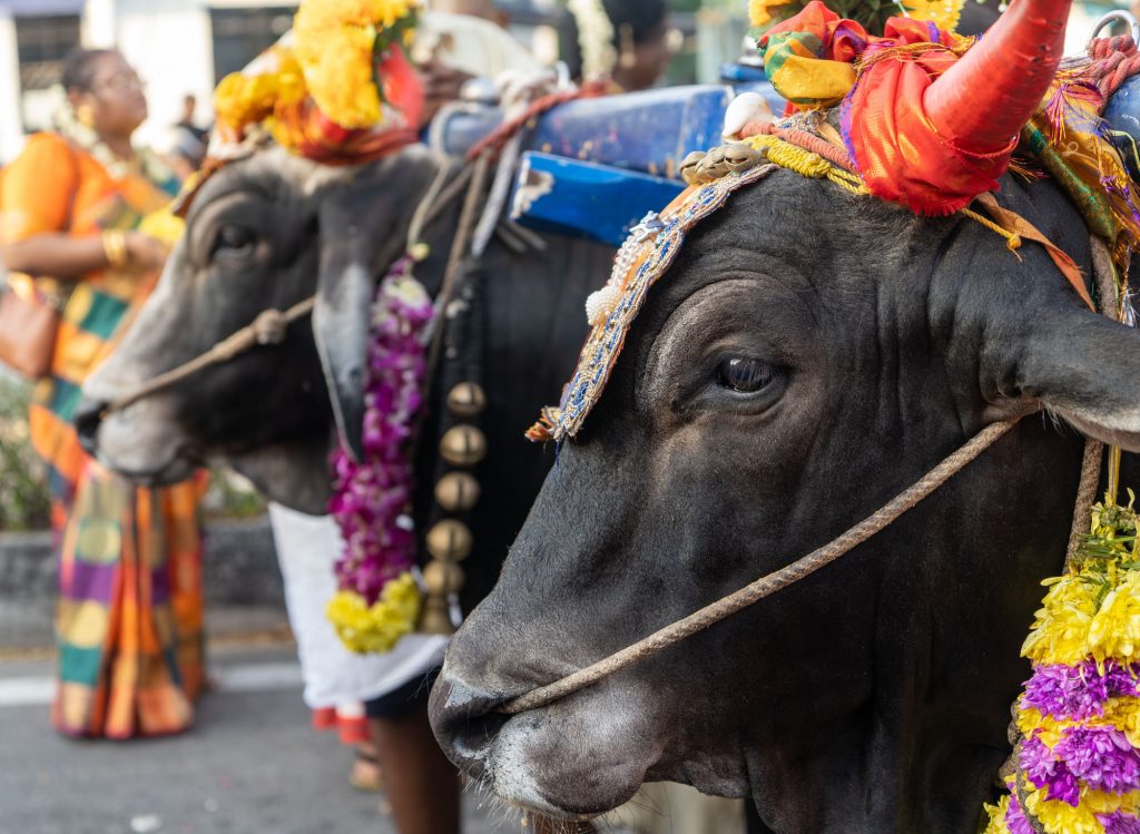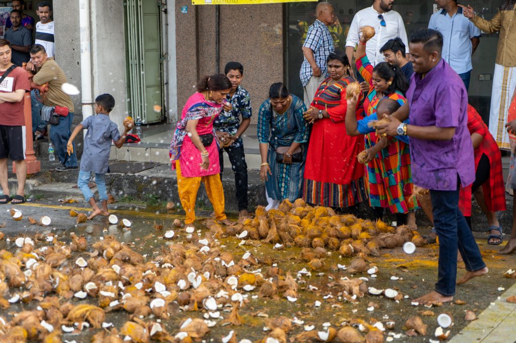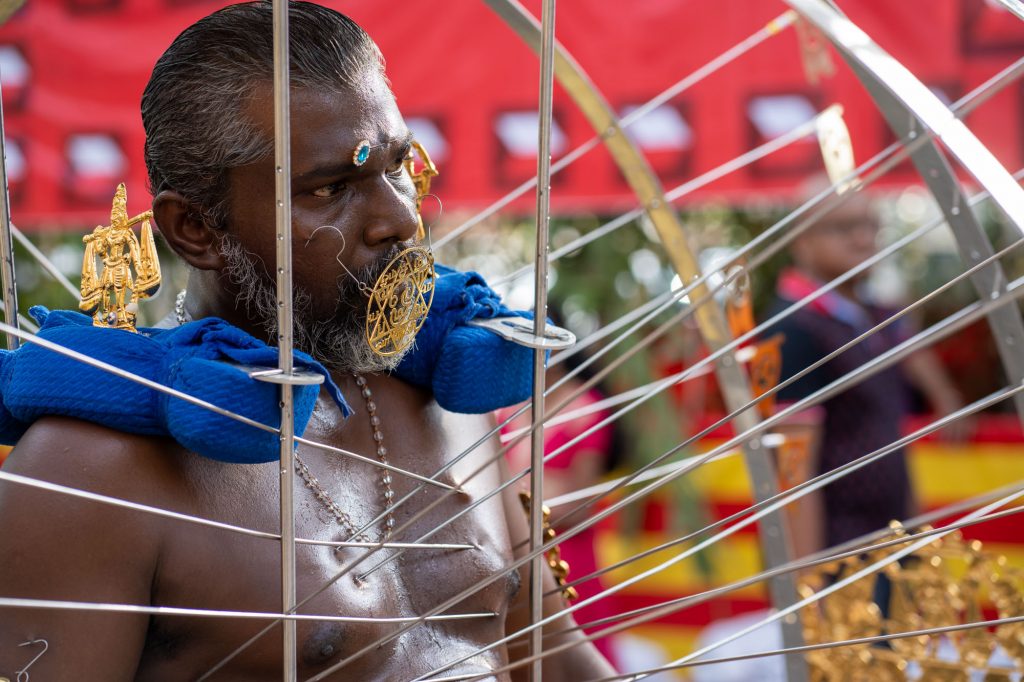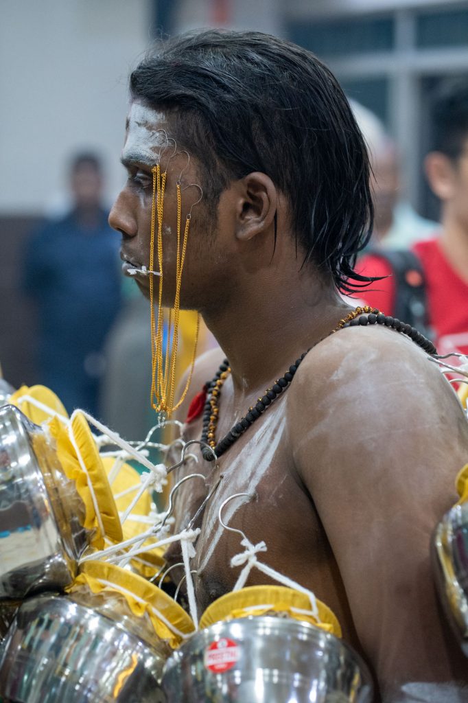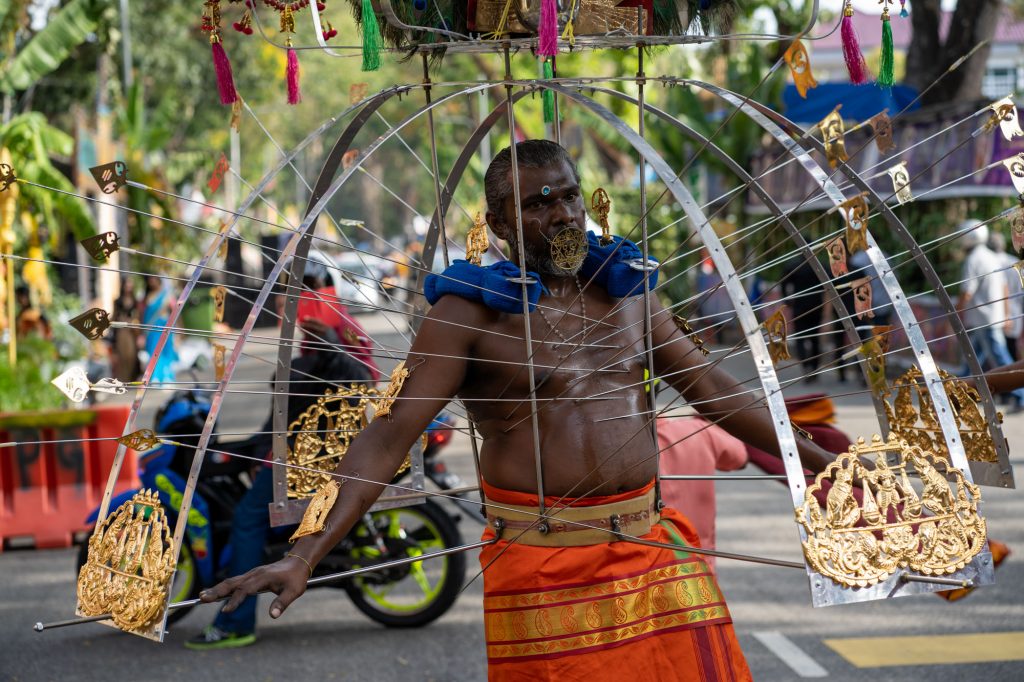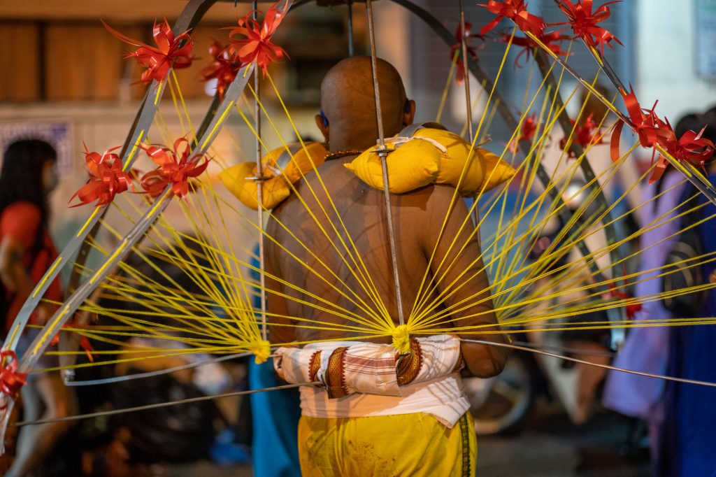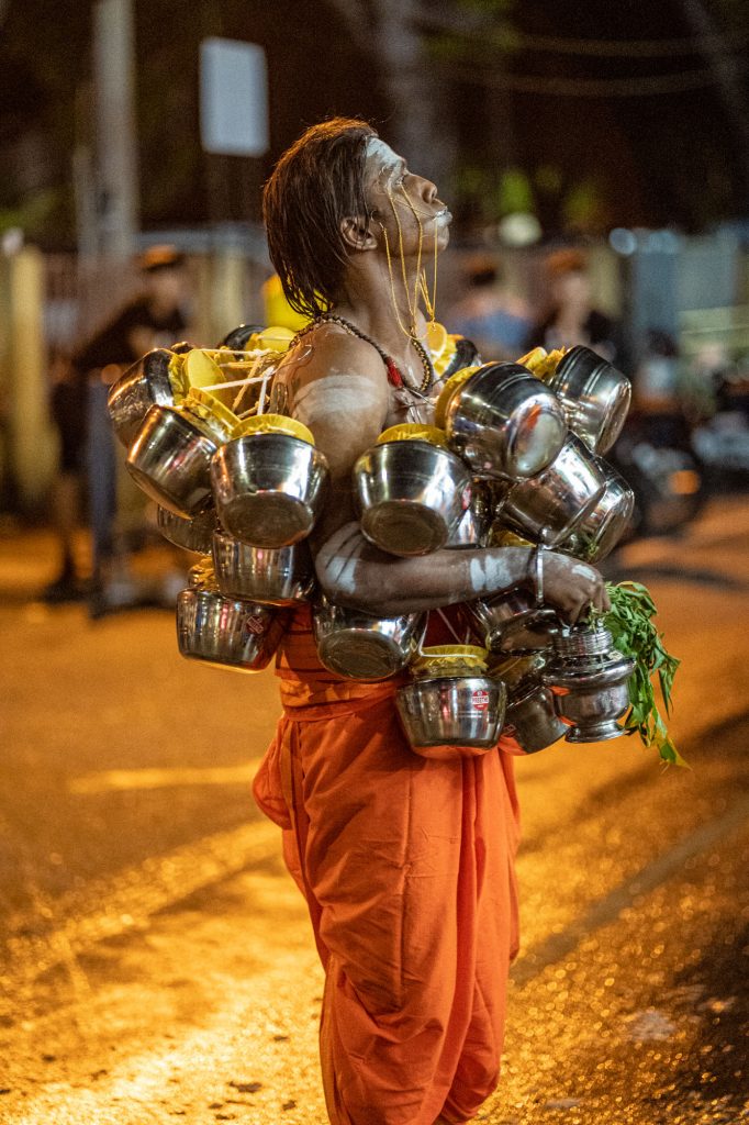 Thaipusam festival is celebrated by the Tamil and Malayali communities on the full moon in the Tamil month of Thai (January/February). The Hindu devotees start their procession in the early morning, carrying offerings like milk pots or piercing spikes on their body travelling from one temple to another.